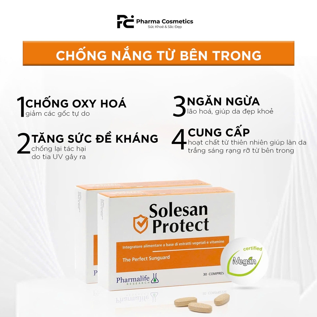 THÀNH PHẦN VÀ CÔNG DỤNG CỦA VIÊN UỐNG CHỐNG NẮNG SOLESAN PROTECT