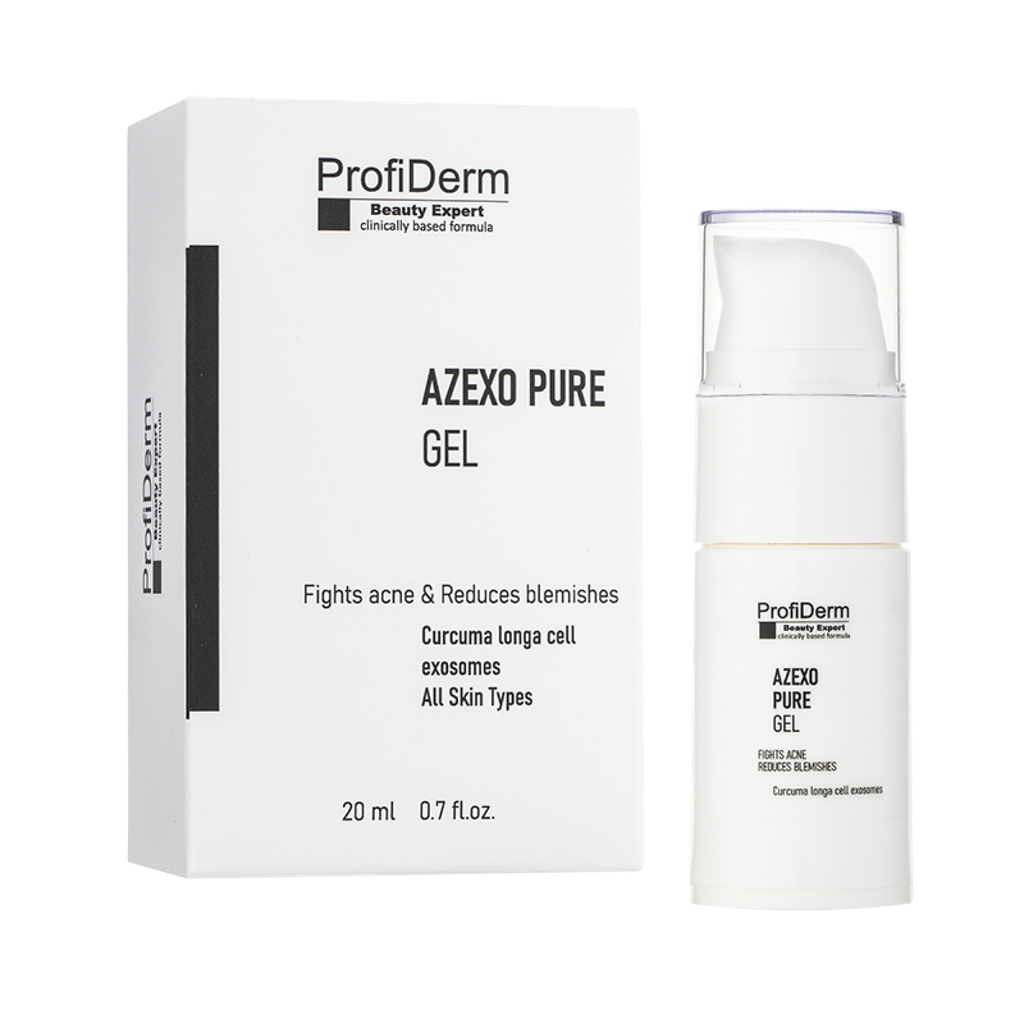 Profiderm Azexo Pure Gel là liệu pháp dermocosmetic cô đặc, là \"chiến thần diệt mụn\" thế hệ mới, được thiết kế để điều trị chuyên sâu cho mọi loại mụn và tăng sắc tố da. Công thức siêu cấp đột phá, kết hợp các hoạt chất quý được bọc công nghệ sinh học tiên tiến, giúp thẩm thấu sâu, đánh thẳng vào gốc rễ gây mụn và tổn thương. Azexo Pure Gel không chỉ giảm viêm, kháng khuẩn, giảm sản xuất bã nhờn mà còn phục hồi và làm sáng da thần tốc nhờ các thành phần tiên tiến như Turmeria Zen™ (tế bào gốc nghệ) và Algaktiv® RetinART (Retinoid sinh học).