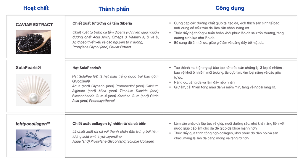 THÀNH PHẦN VÀ CÔNG DỤNG CỦA Pearl Serum with Caviar & Sea Collagen