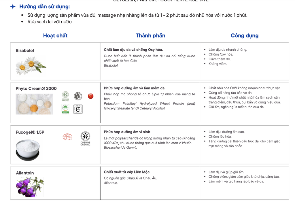 Allantoin & Bisabolol: Bộ đôi hoạt chất làm dịu, giảm đỏ và chống kích ứng hiệu quả.