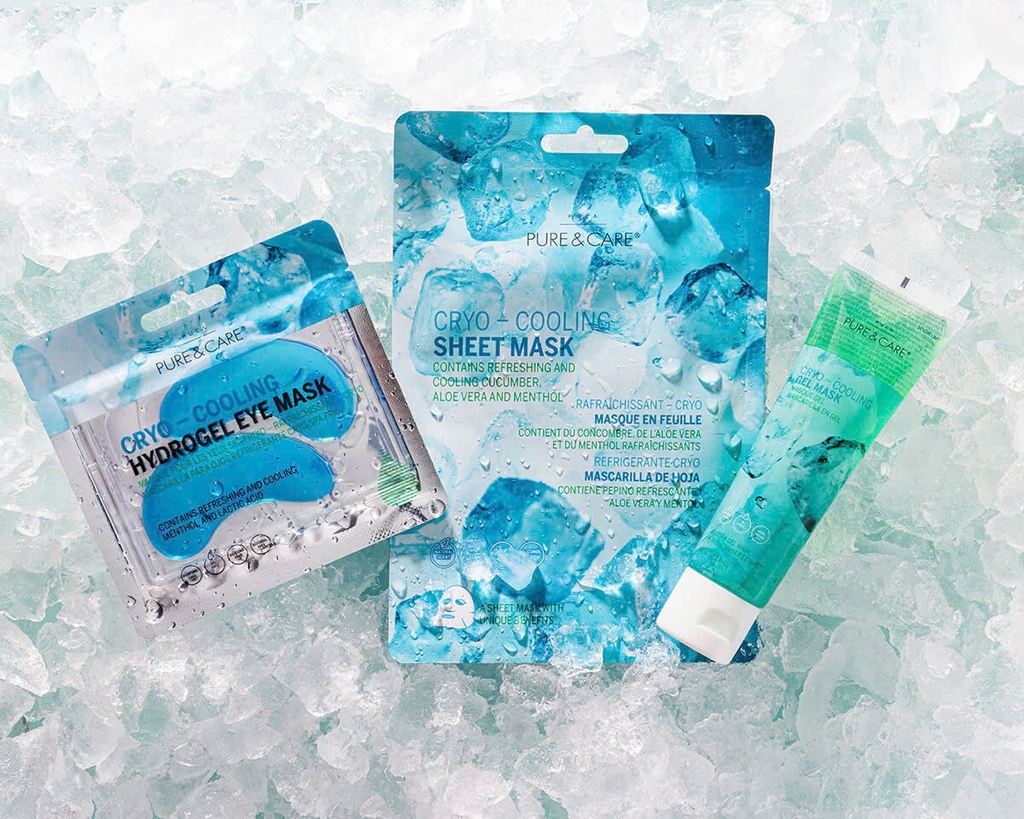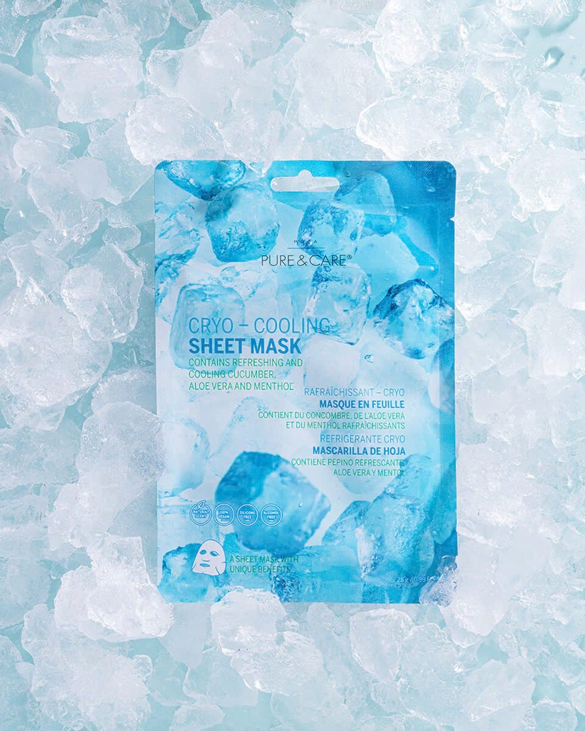 PURE & CARE CRYO – COOLING – SHEET MASK là mặt nạ giấy làm mát và làm dịu da với công thức đặc biệt, giúp hạ nhiệt độ da tức thì, giảm ửng đỏ, cấp ẩm và phục hồi làn da cháy nắng, mang lại cảm giác mát lạnh sảng khoái.