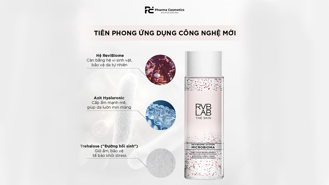Hệ thống ReviBiome (Lactobacillus, Polymnia Sonchifolia Root Juice, Alpha-Glucan Oligosaccharide): Duy trì sự cân bằng sinh lý của hệ sinh thái vi khuẩn trên da, tăng cường hàng rào bảo vệ tự nhiên, giúp da khỏe mạnh hơn.