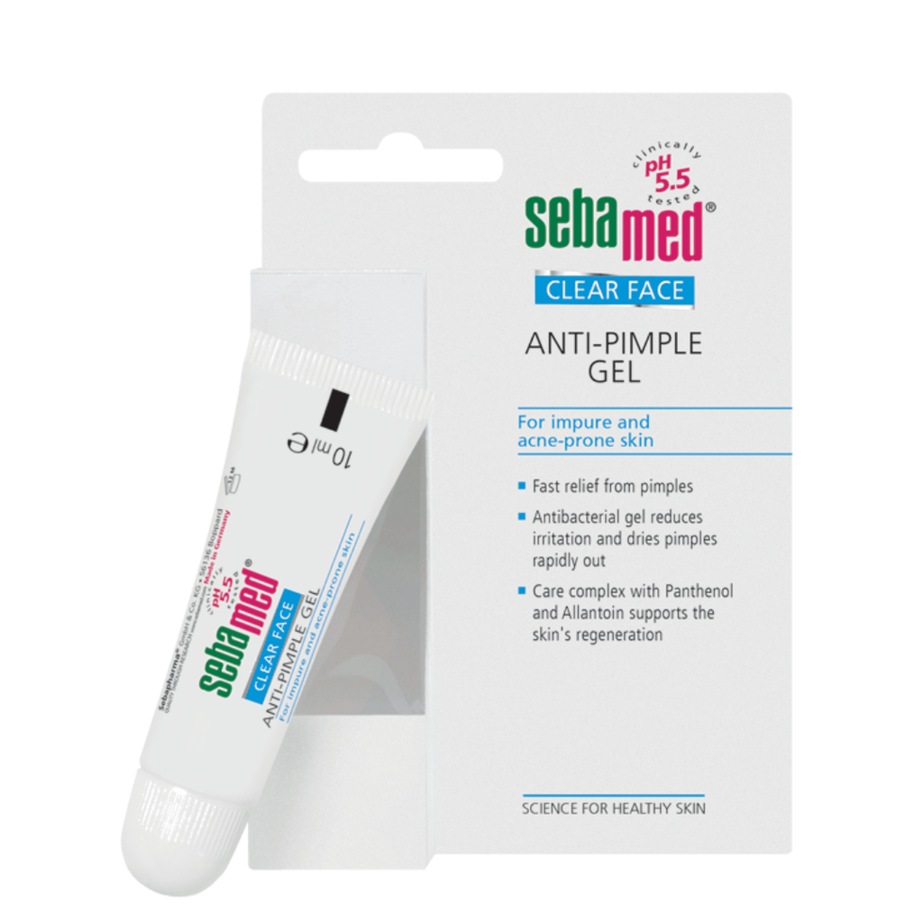 SEBAMED CLEAR FACE ANTI-PIMPLE GEL là gel trị mụn chuyên biệt từ Đức, với công thức pH5.5 giúp cân bằng độ pH tự nhiên của da, đồng thời chứa các thành phần kháng khuẩn và làm dịu da, giúp giảm mụn nhanh chóng và ngăn ngừa mụn tái phát.