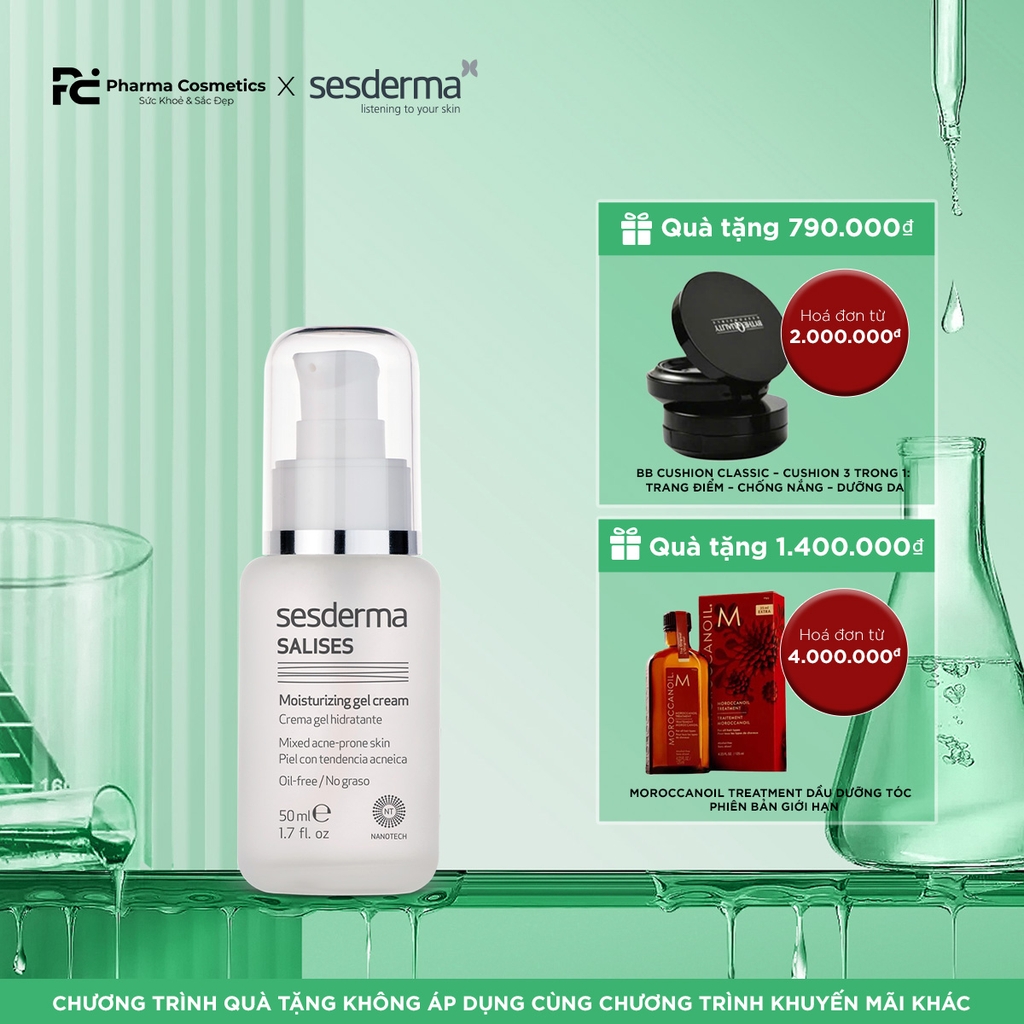 SESDERMA SALISES MOISTURIZING GEL là gel dưỡng ẩm kiềm dầu, được bào chế đặc biệt để chăm sóc da hỗn hợp và da dễ nổi mụn. Sản phẩm này cung cấp độ ẩm cần thiết, đồng thời giúp điều tiết bã nhờn, loại bỏ tạp chất và tế bào chết. Nhờ tác dụng của Axit Salicylic ở cả dạng tự do và Liposomal, gel mang lại hiệu quả kép (trên bề mặt và thấm sâu), giúp làm thông thoáng lỗ chân lông, giảm mụn và viêm. Gel có kết cấu dạng kem gel lỏng, mang lại cảm giác tươi mát mà không gây nhờn rít, là đồng minh hoàn hảo cho làn da có tuyến bã nhờn hoạt động quá mức ở vùng chữ T (trán, mũi, cằm).