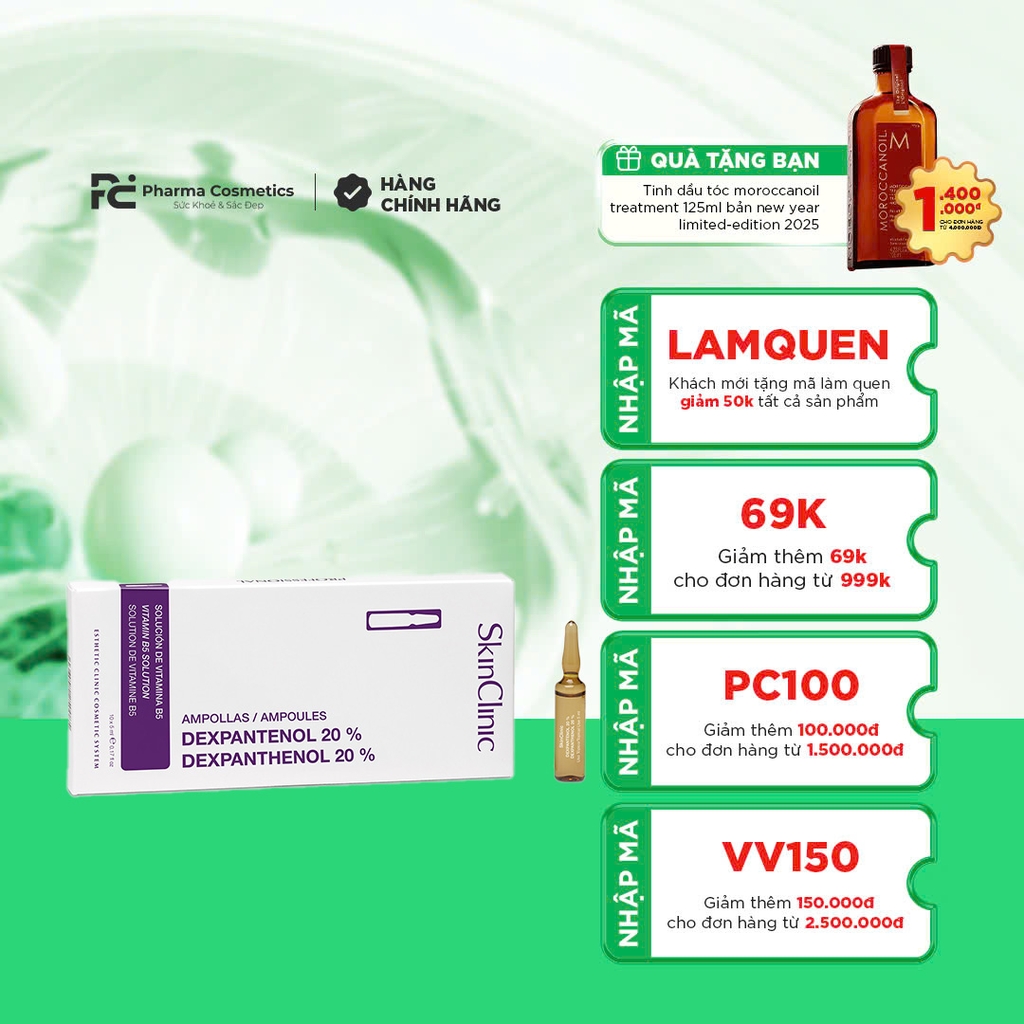 SKINCLINIC DEXPANTHENOL 20% AMPOULES: Tinh Chất Phục Hồi & Dưỡng Ẩm Sâu, Cho Làn Da Căng Bóng