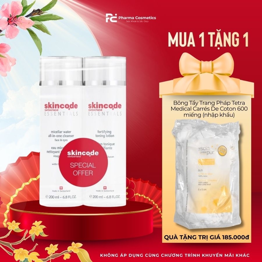 Skincode Essentials Duo Pack là bộ giải pháp làm sạch kép hoàn hảo đến từ Thụy Sĩ, bao gồm 2 sản phẩm best-seller của hãng: Nước tẩy trang Micellar Water All-in-One Cleanser (Ref.1025) và Nước cân bằng Fortifying Toning Lotion (Ref.1026).