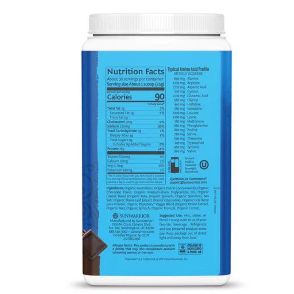 SUNWARRIOR WARRIOR BLEND PLUS GREENS CHOCOLATE / BỘT PROTEIN THỰC VẬT HỮU CƠ THÊM RAU XANH ( SÔ CÔ LA)