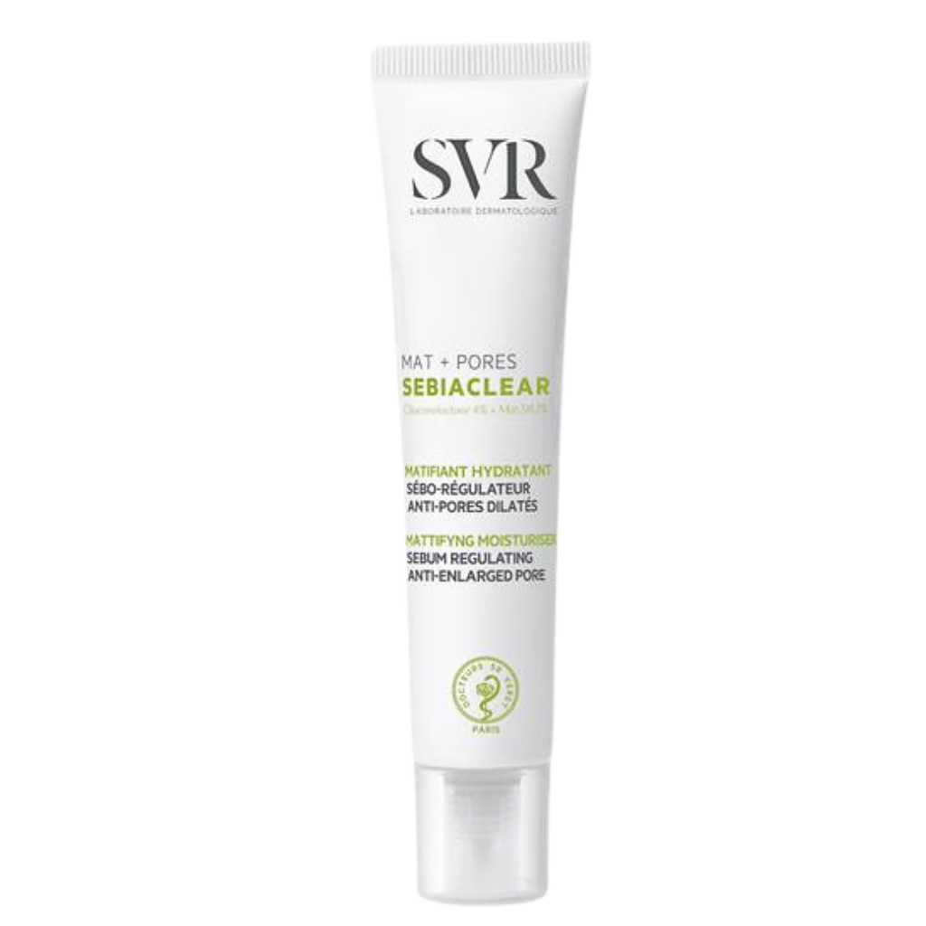 - Kem Dưỡng Làm Giảm Mụn SVR Sebiaclear Matt + Pores được nghiên cứu và điều chế bởi các chuyên gia da liễu để góp thêm một sản phẩm vào danh sách chăm sóc da hiệu quả dành cho phái đẹp. Với các thành phần chiết xuất từ các thành phần dược đặc trị, Sebiaclear Mat + Pores sẽ giúp cải thiện kết cấu da để loại bỏ các vấn đề về mụn, đồng thời làm giảm vết thâm, làm dịu da và ngăn chặn sự hình thành của mụn