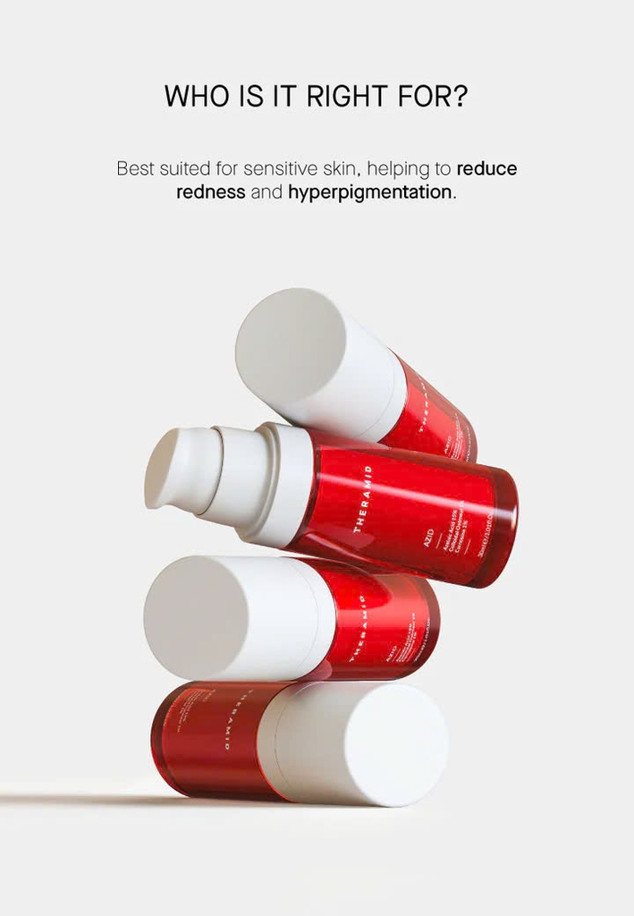 Theramid AZID - tinh chất trị mụn và chống lão hoá đến từ Tây Ban Nha sẽ là "cứu tinh" cho làn da của bạn! Với nồng độ 15% Azelaic Acid cùng các thành phần hoạt tính mạnh mẽ, Theramid AZID giúp giảm mụn, mờ thâm, kiểm soát dầu thừa, đồng thời chống lão hoá, cải thiện kết cấu da, mang lại làn da sáng mịn, đều màu.