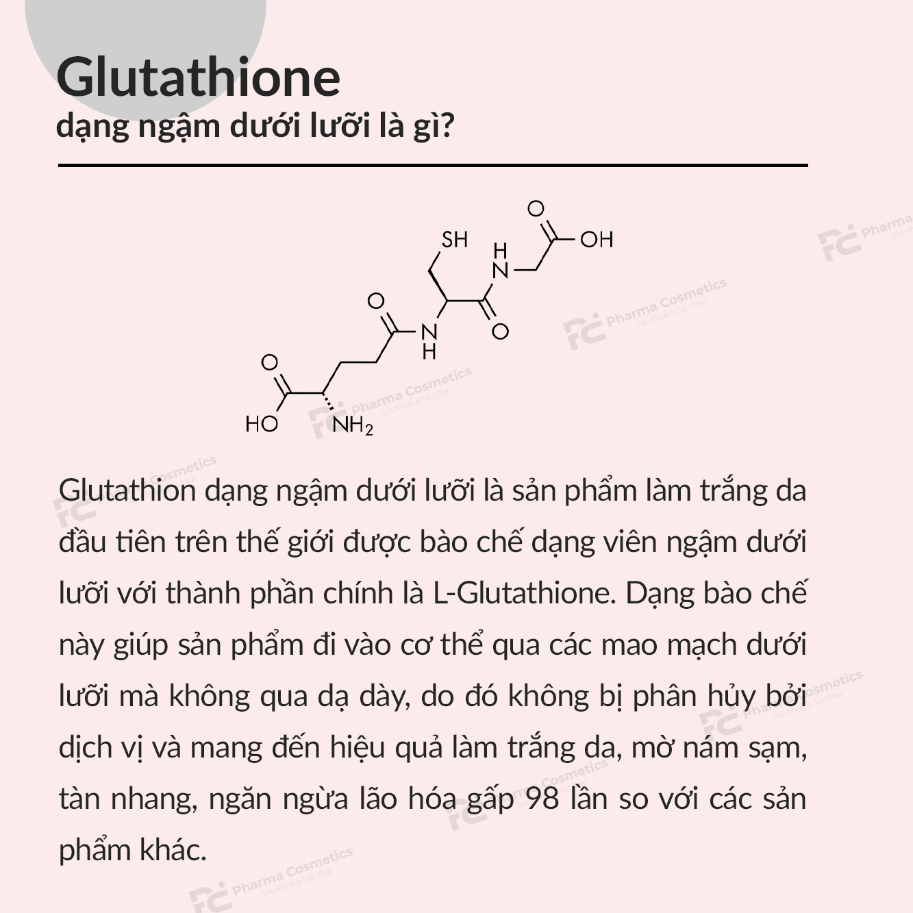 Ngày nay Glutathione dạng ngậm, uống hoặc tiêm tĩnh mạch, được bán rộng rãi trên thị trường. Thì Glutathione dạng ngậm dưới lưỡi vẫn là tân tiến, an toàn và hiệu quả nhất.