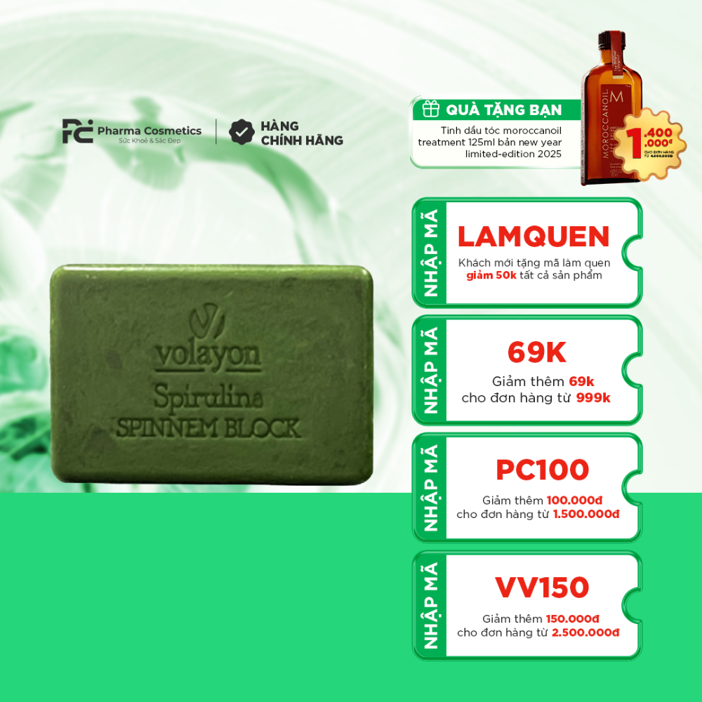 Xà Phòng Tảo 𝗦𝗽𝗶𝗿𝘂𝗹𝗶𝗻𝗮 𝗩𝗼𝗹𝗮𝘆𝗼𝗻 Làm Sạch Da Và Trị Mụn Lưng 𝗦𝗣𝗜𝗡𝗡𝗘𝗠 𝗕𝗟𝗢𝗖𝗞 (𝟭𝟮𝟬𝗴)