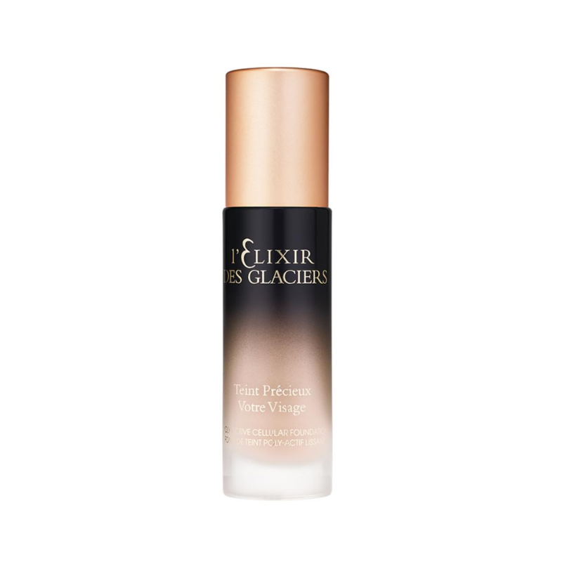 - Một loại kem nền mịn màng với lớp nền mờ, phép thuật của l'Elixir des Glaciers mang lại hiệu ứng mướt mát và đồng màu trên da như một tấm màn satin, giúp xóa mờ các dấu hiệu lão hóa.