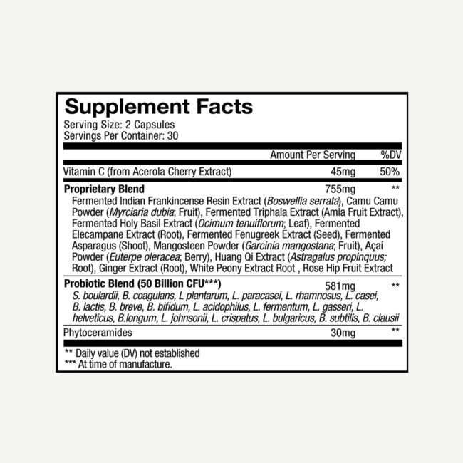 \n– Đặc biệt, Codeage Skin Probiotic còn cung cấp Phytoceramides, giúp tăng cường chức năng hàng rào bảo vệ da, giảm kích ứng và giữ ẩm cho da. Chất Phytoceramides đặc biệt tốt cho những bạn có làn da nhạy cảm.
