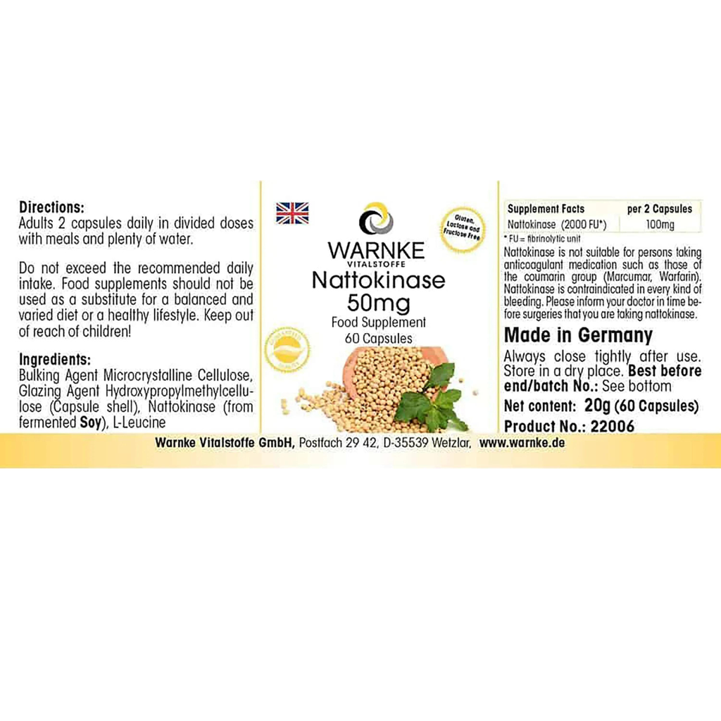 WARNKE NATTOKINASA 50mg / VIÊN UỐNG ĐIỀU TRỊ VÀ PHÒNG NGỪA TẮC NGHẼN MẠCH MÁU GÂY MÁU ĐÔNG, TAI BIẾN