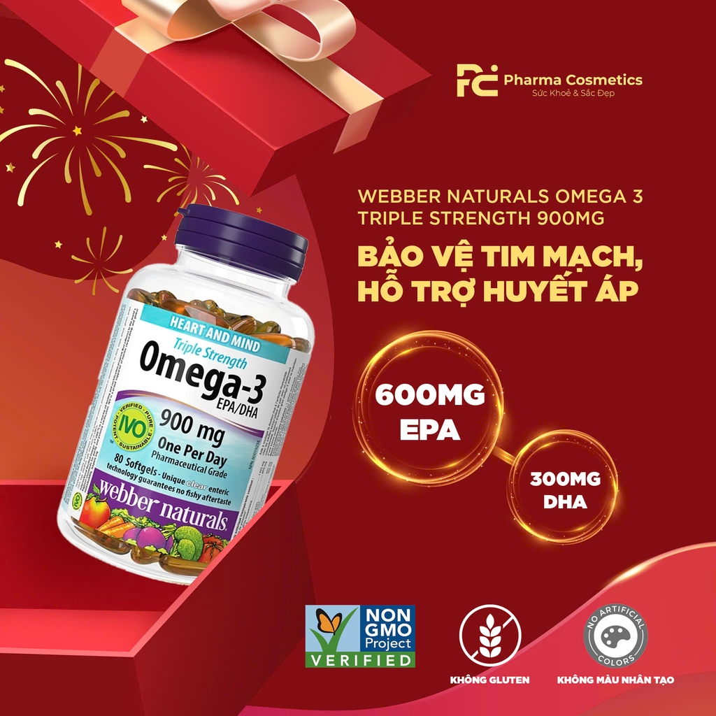 Pharmacosmetics hân hạnh giới thiệu Webber Naturals Triple Strength Omega-3 900mg, viên uống bổ sung Omega-3 hàm lượng cao đến từ Canada. Sản phẩm được chiết xuất từ dầu cá tinh khiết, giàu EPA và DHA, mang đến hiệu quả vượt trội trong việc hỗ trợ sức khỏe tim mạch, trí não, thị lực và tăng cường sức đề kháng.